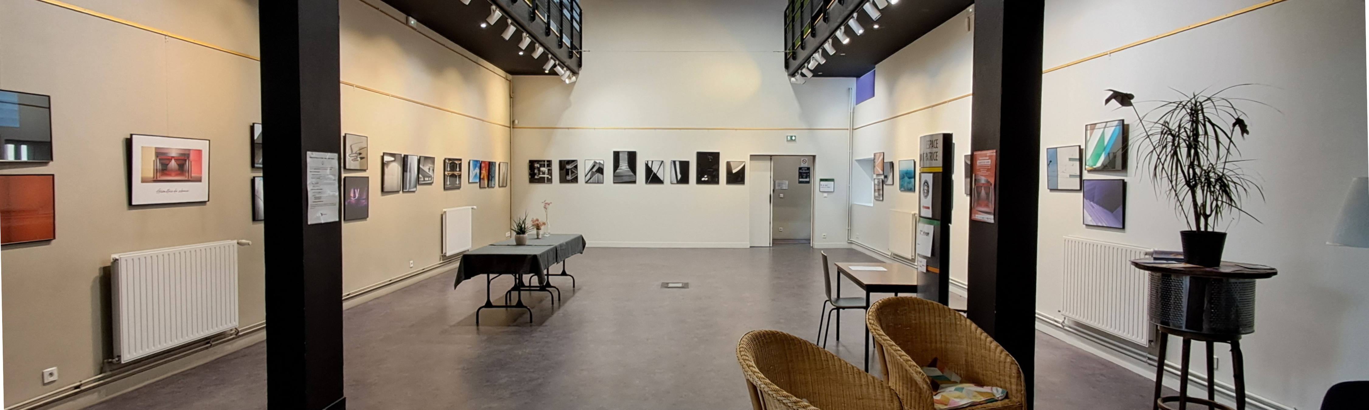 Lieu convivial, il accueille expositions. Sur demande, du mobilier d’exposition (grilles, guides-fil) peut être mis à disposition.